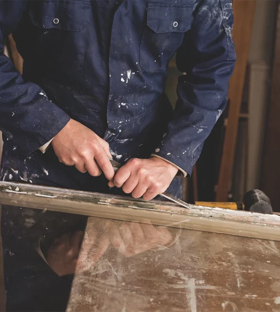 Har du gamla spegeldörrar med många lager färg? Vi renoverar och målar dem så att speglarna framträder igen och dörrarna stänger som de ska.